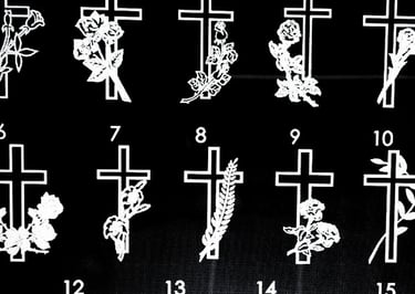Raidžių kalimas, dažymas, bronzinės raidės, kryželiai, portretų graviravimas, keramikiniai portretai